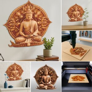 Eleva tu espacio con nuestro Paquete de Archivos de Grabado Láser con Ilusión 3D de Buda, que incluye cautivadoras plantillas espirituales de Buda y loto. Cada diseño irradia tranquilidad, lo que lo hace perfecto para realzar el ambiente y la energía de tu hogar.