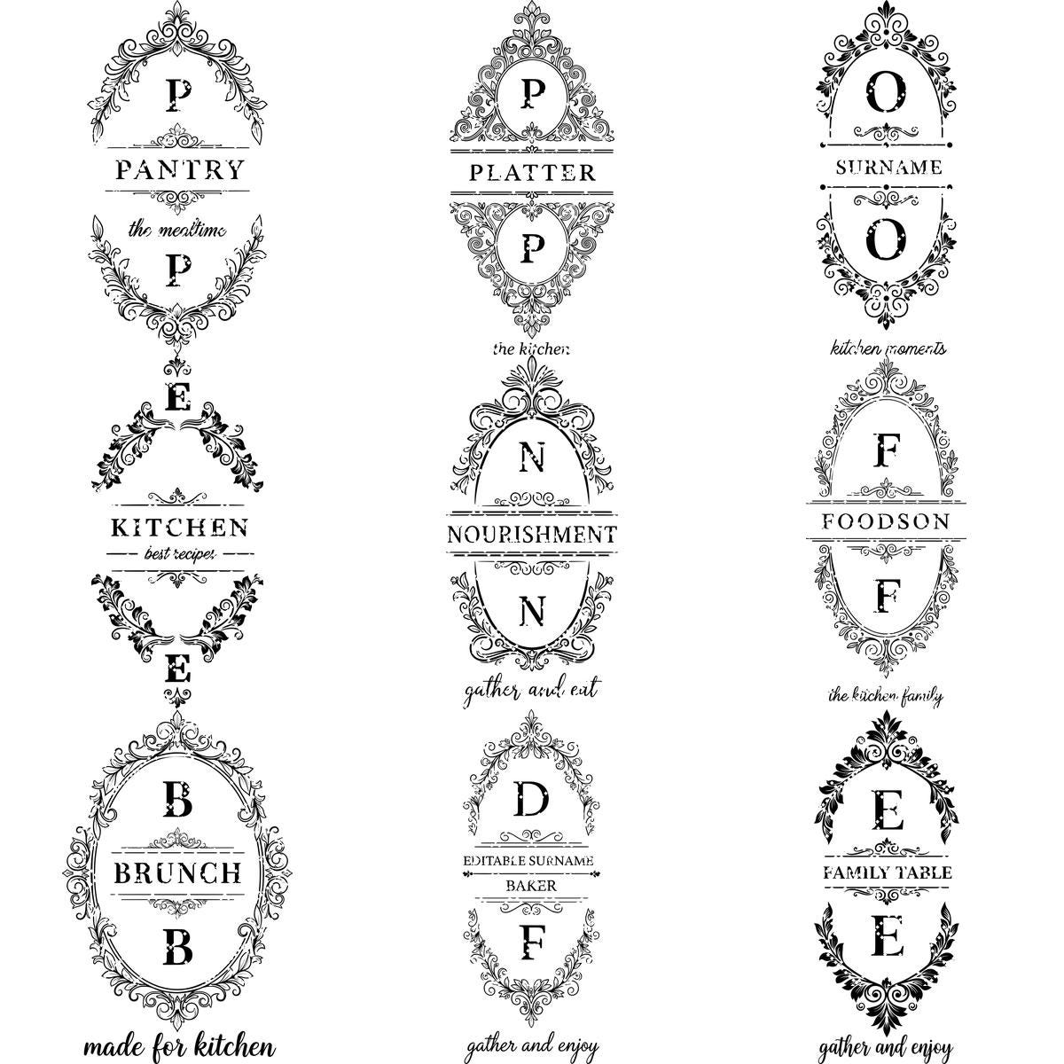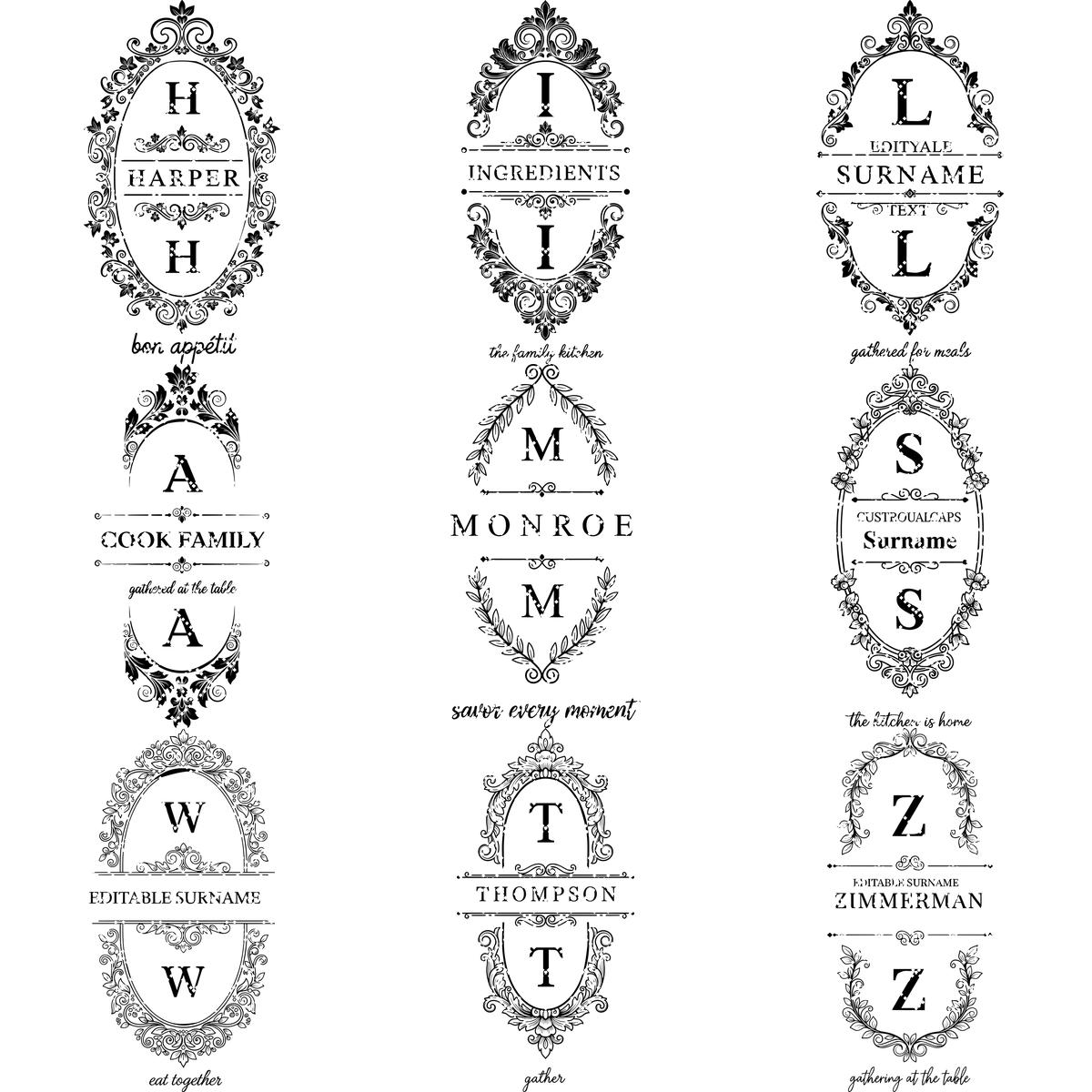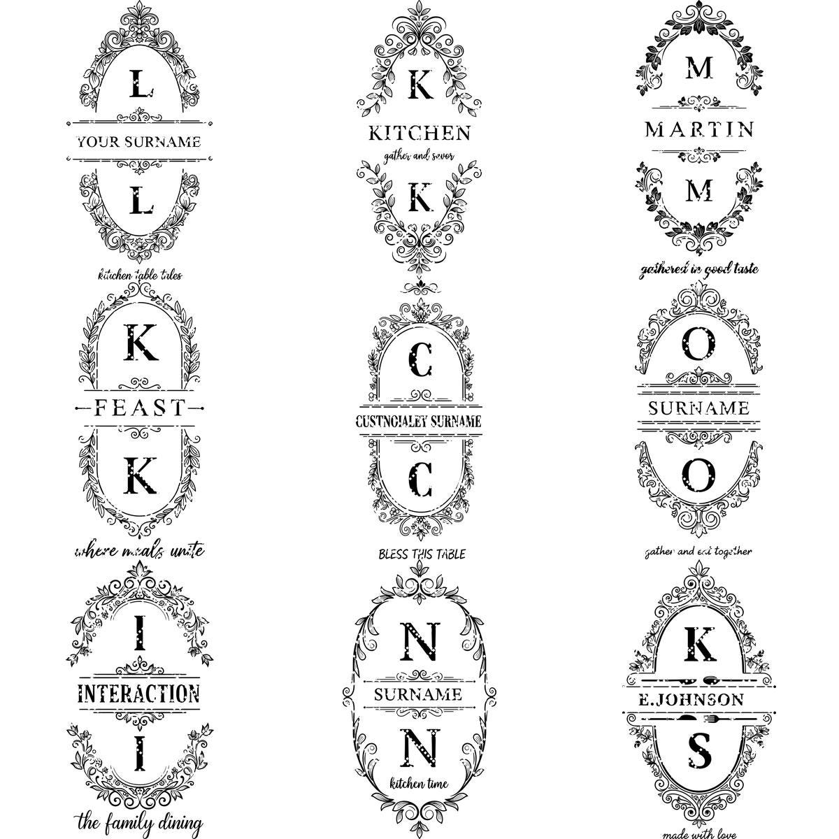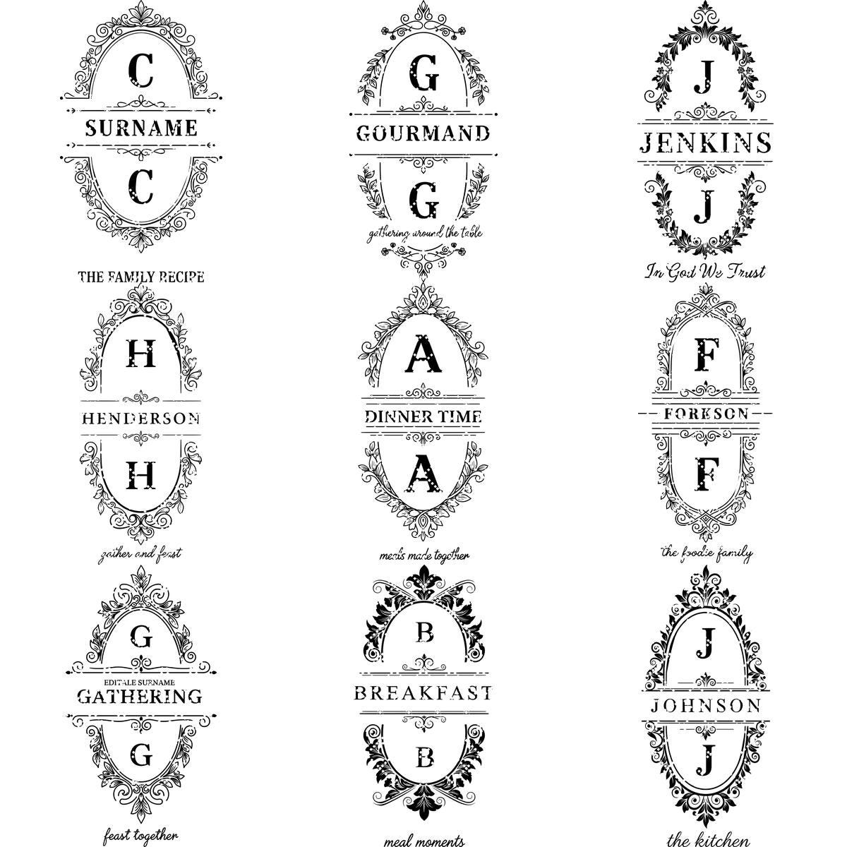 Con marcos de inspiración vintage perfectos para exhibir nombres de familia, estos grabados aportan una elegancia atemporal a tus creaciones.
