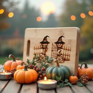 Eleva tus reuniones de Halloween con nuestro encantador diseño de tabla de charcutería de sombrero de bruja, perfecto para crear un centro de mesa espeluznante y memorable. Este diseño de grabado único añade instantáneamente un toque festivo a tus tablas de quesos y aperitivos para fiestas.