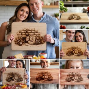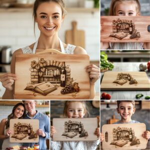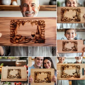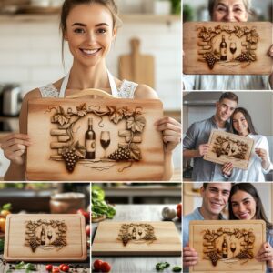 Sublimez votre cuisine ou votre salle à manger avec cet ensemble exclusif de 6 motifs de gravure laser, conçus spécialement pour les planches à charcuterie et les amateurs de vin. Chaque modèle présente une bouteille de vin rétro captivante, des raisins succulents et des effets d’illusion 3D hypnotiques pour une présentation vraiment unique.