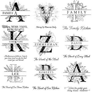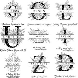 Notre collection de monogrammes botaniques constitue le cadeau de mariage parfait ou un héritage familial idéal. Impressionnez vos proches en immortalisant leur nom de famille avec un design svg élégant qui se démarque dans n’importe quelle cuisine. Découvrez l’art de la gravure personnalisée et faites de chaque repas une célébration.