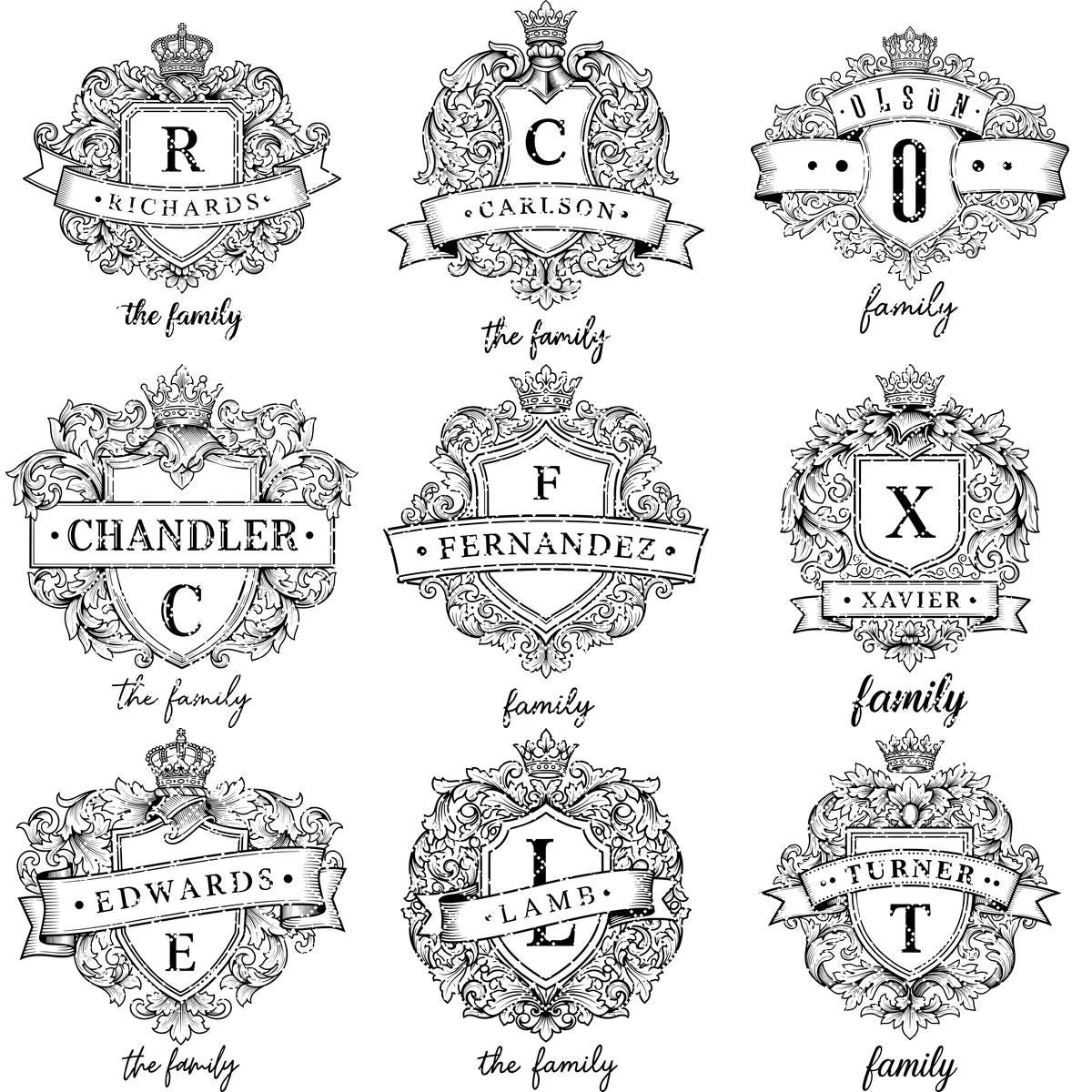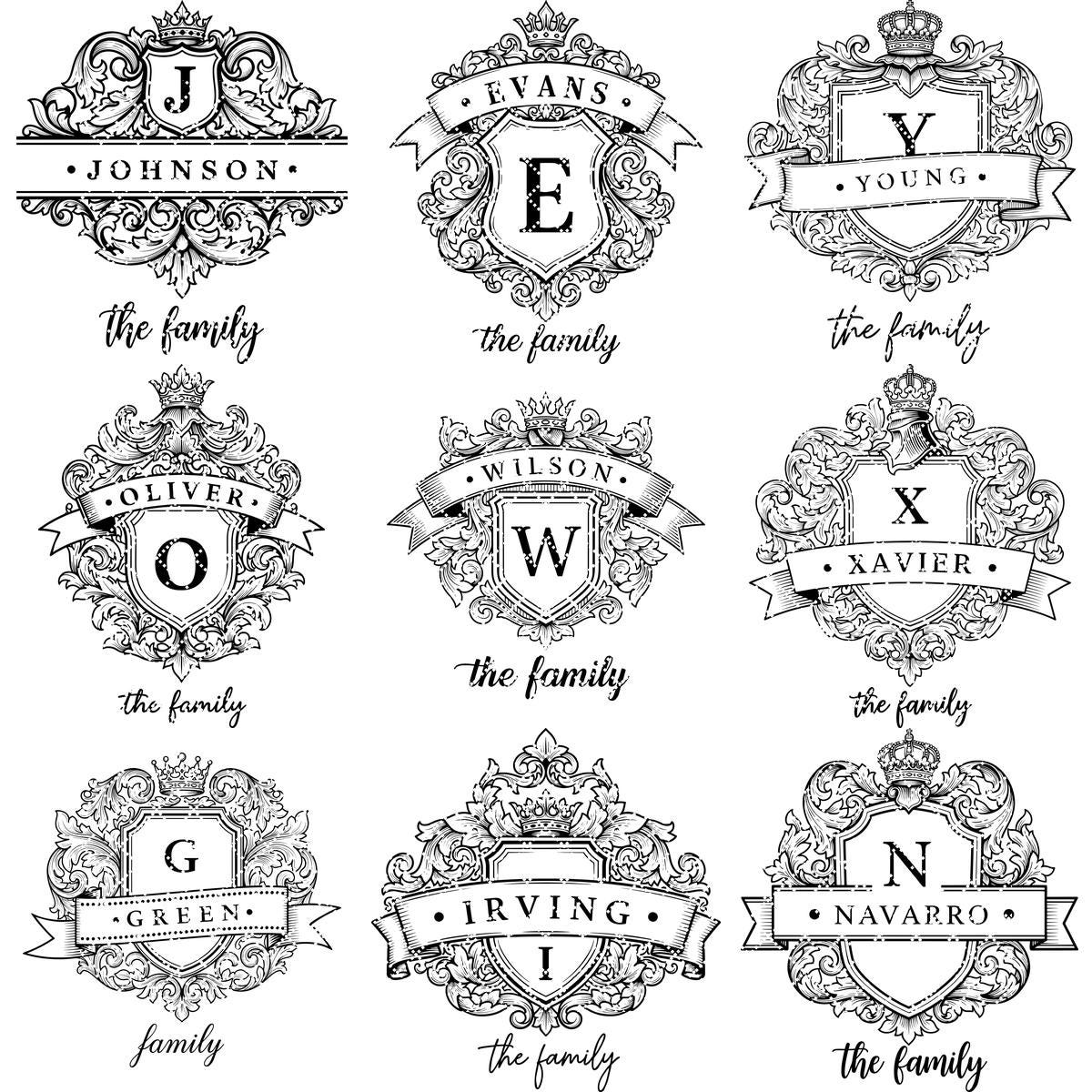 Sublimez vos souvenirs avec le Pack Blason Familial Monogramme, comprenant d’exquis motifs de boucliers vintage et des éléments d’alphabet personnalisés. Parfait pour créer des gravures intemporelles et royales qui célèbrent l’héritage de votre famille avec une élégance inégalée.