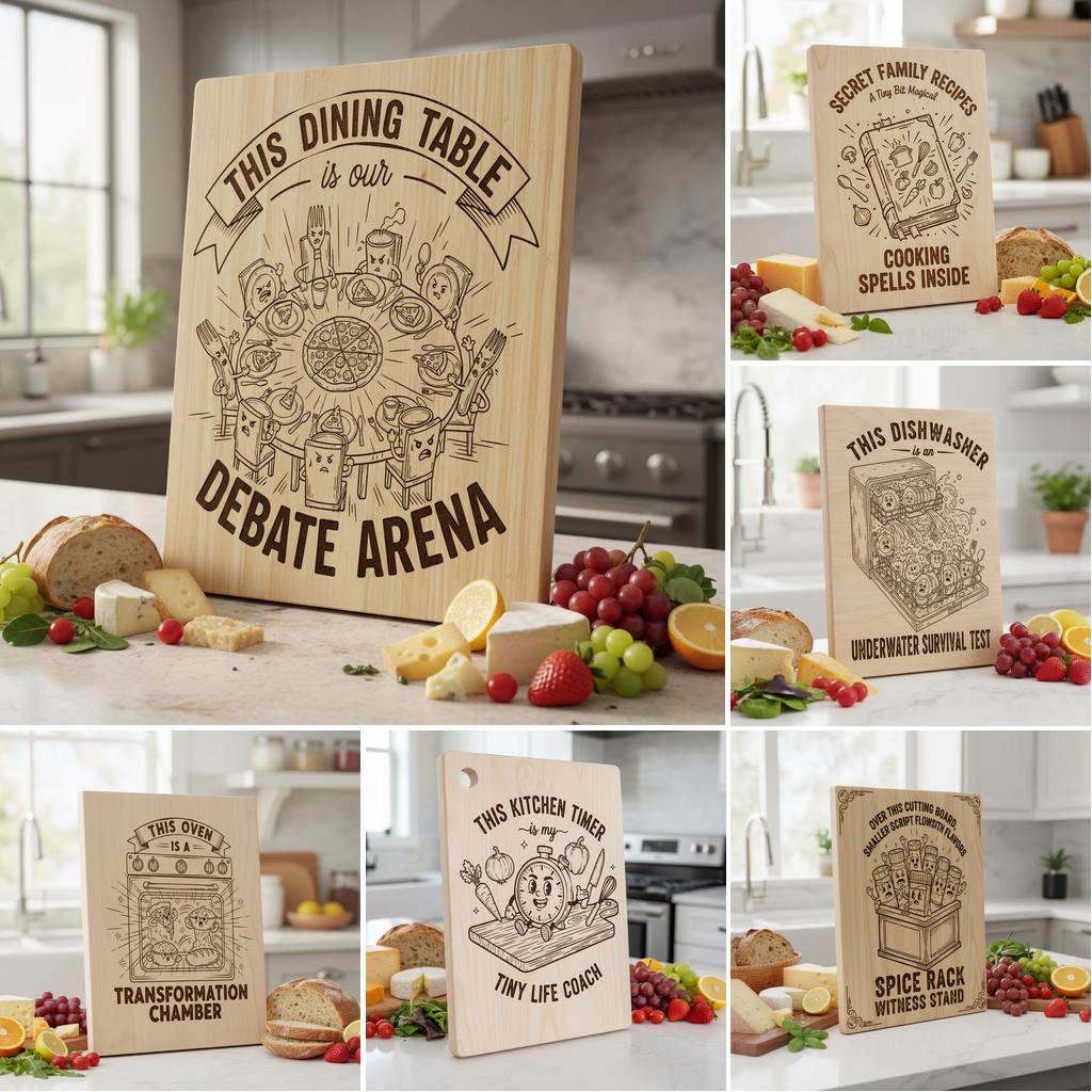Cet ensemble de 20 pièces présente des éléments de recettes et de design fantaisistes, méticuleusement conçus pour toutes les principales graveuses laser comme Lightburn et Glowforge. Rehaussez instantanément n’importe quelle planche ou pièce de service avec un art unique.