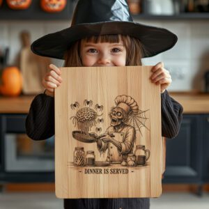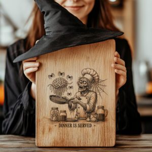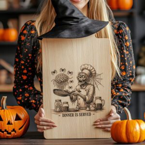 Préparez-vous à émerveiller vos clients avec notre fichier de gravure laser pour Halloween, mettant en vedette un Chef Zombie hilarant, parfait pour les célébrations de la saison effrayante. Ce design unique transforme instantanément n’importe quel plateau de charcuterie en un sujet de conversation pour tous les amateurs de cuisine et passionnés d’Halloween.