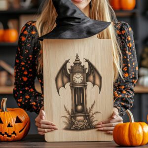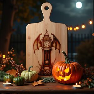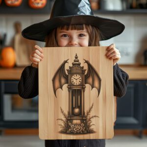 Sublimez vos rassemblements d’Halloween avec notre fichier de gravure exclusif pour planche à charcuterie gothique. Arborant un design envoûtant d’horloge de grand-père à ailes de chauve-souris, ce fichier transforme n’importe quelle planche de service en une pièce maîtresse effrayante qui captivera assurément vos invités.