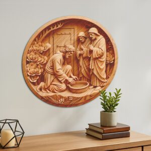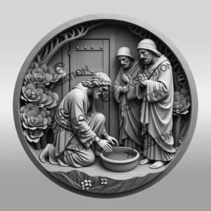 Apportez un message puissant d’humilité et de foi dans votre foyer avec notre fichier de gravure laser Illusion 3D Jésus. Ce design saisissant capture le moment où Jésus lave les pieds de ses disciples, en faisant une pièce décorative parfaite pour un intérieur chrétien.