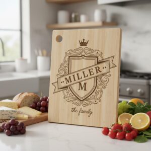 Sublimez vos présentations de charcuterie avec cet élégant motif de monogramme Blason Familial, parfait pour ajouter une touche royale à n’importe quelle planche. Conçu pour impressionner, il transforme des pièces de service ordinaires en chefs-d’œuvre personnalisés qui reflètent l’héritage et le style.