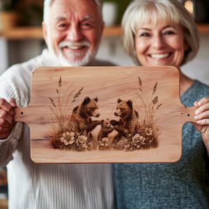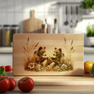 Sublimez votre cuisine avec notre fichier de gravure laser pour planche à charcuterie « Famille Ours dans un Champ Herbeux ». Ce design charmant capture une scène paisible de forêt, parfait pour les amoureux de la nature et les passionnés de décoration rustique. Transformez instantanément n’importe quelle planche en une pièce maîtresse époustouflante grâce à cette œuvre d’art unique et réconfortante.