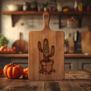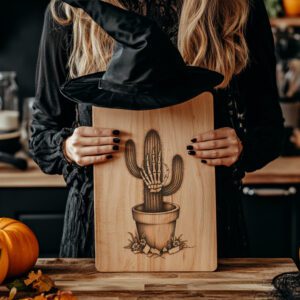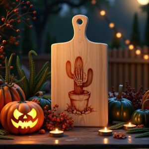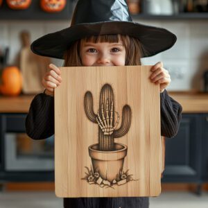 Rehaussez votre fête d’Halloween avec notre fichier de gravure laser pour une planche à charcuterie présentant un motif hilarant de cactus en forme de main de zombie. Ce motif unique ajoute instantanément une touche effrayante à votre célébration, rendant votre présentation de collations inoubliable.