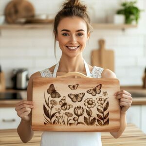 Les détails complexes de papillons délicats et de fleurs vibrantes ajoutent une touche d’élégance à toute réunion. Il suffit de télécharger le fichier sur votre graveur laser et de regarder ce magnifique dessin prendre vie sur le bois ou tout autre matériau approprié de votre choix. Créez facilement des cadeaux personnalisés ou de superbes accents de cuisine.