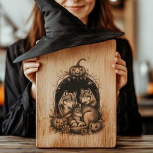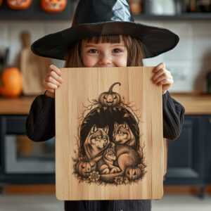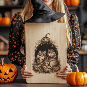 Sublimez vos festivités d’Halloween avec notre fichier de gravure laser pour planche à charcuterie en arche Loups et Citrouilles d’Halloween. Ce design envoûtant transforme n’importe quelle planche de service en une pièce maîtresse époustouflante, parfaite pour les rassemblements et fêtes de saison.