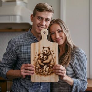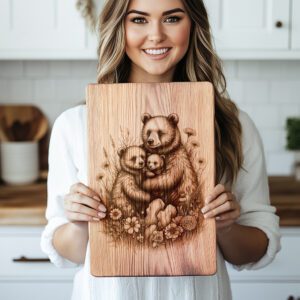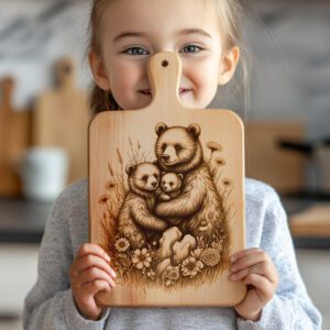 Sublimez la décoration de votre cuisine avec notre fichier de gravure laser pour planche à charcuterie, mettant en scène une famille d’ours réconfortante dans une prairie pittoresque. Ce modèle rustique de forêt apporte le charme de la nature directement dans votre maison et ajoute une touche unique et artisanale à toute réunion ou célébration.