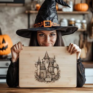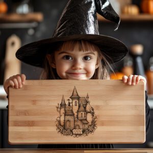 Transformez vos rassemblements d’Halloween avec notre fichier laser pour planche à charcuterie Silhouette Château de Sorcière, conçu pour apporter une touche enchanteresse à vos célébrations effrayantes. Les détails complexes du château et de la sorcière préparent le terrain pour des présentations de fête mémorables.