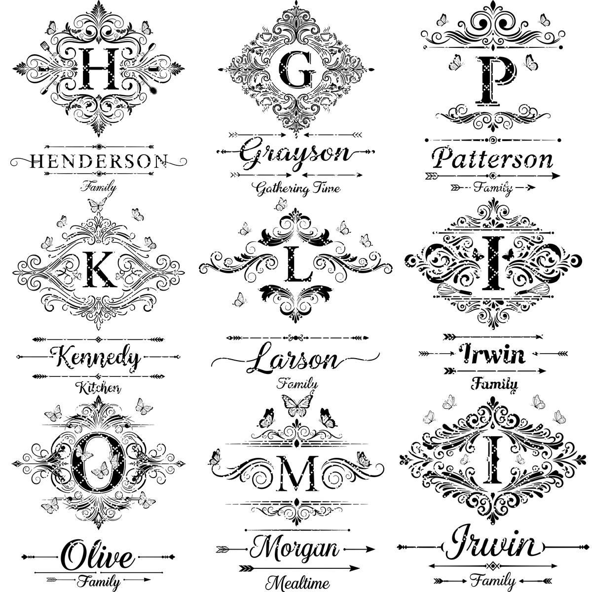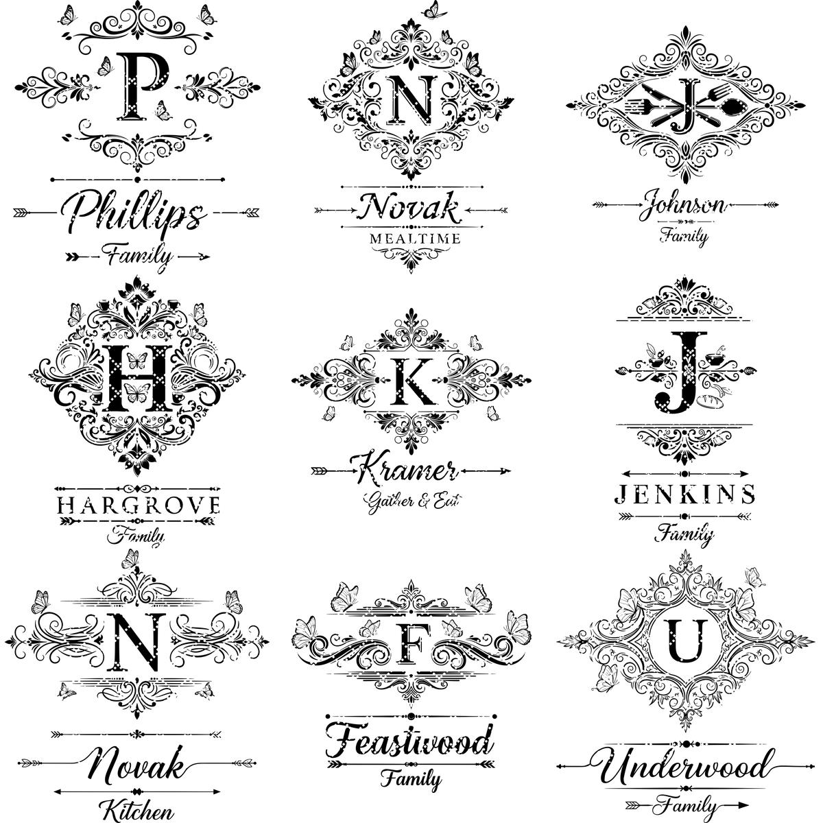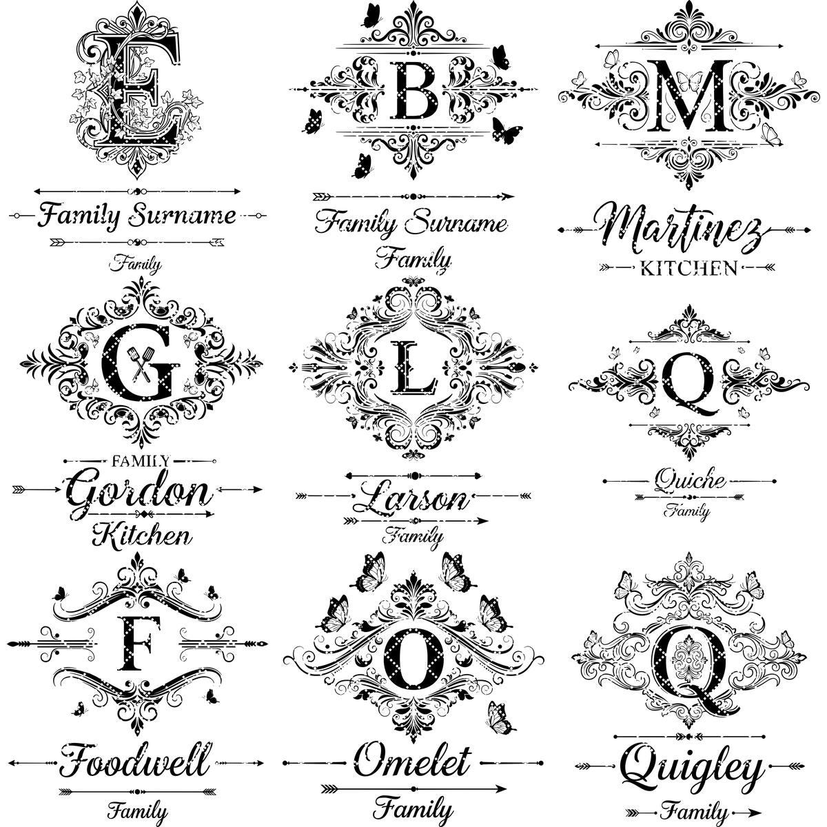 Rehaussez l’esthétique de votre cuisine avec notre Collection Gravure Vintage, mettant en vedette un alphabet orné et des motifs personnalisés au nom de famille. Conçus pour apporter un charme intemporel, ces motifs complexes s’adaptent parfaitement à tous les styles, ajoutant une touche personnelle à votre décoration intérieure.