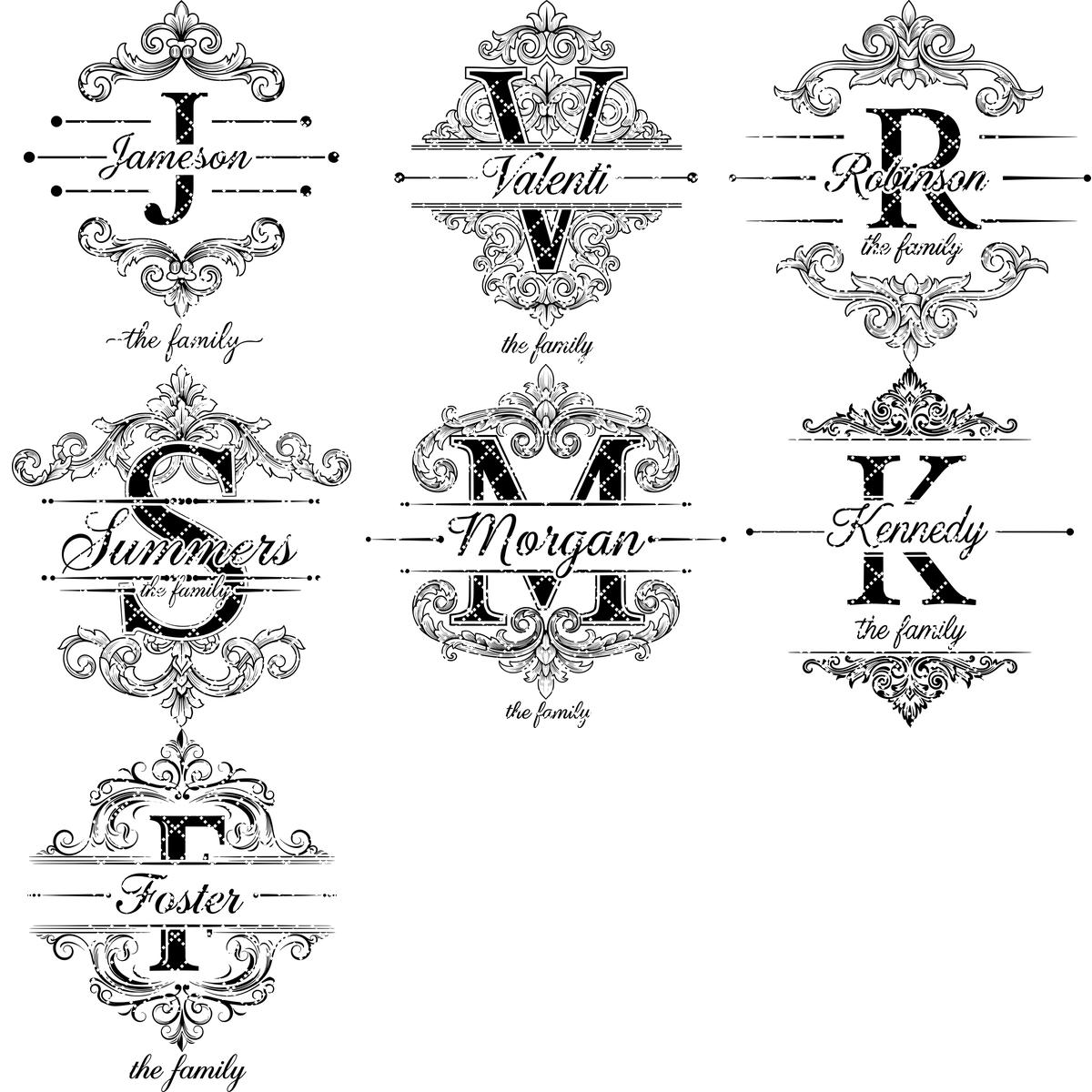 **REMARQUE :** Ce pack inclut les 26 lettres de l’alphabet, avec des images de chaque lettre présentées dans les photos du produit. Ce pack ne comprend pas de fichiers de police. Vous pouvez supprimer les anciens noms de famille et en ajouter de nouveaux en utilisant vos propres polices.