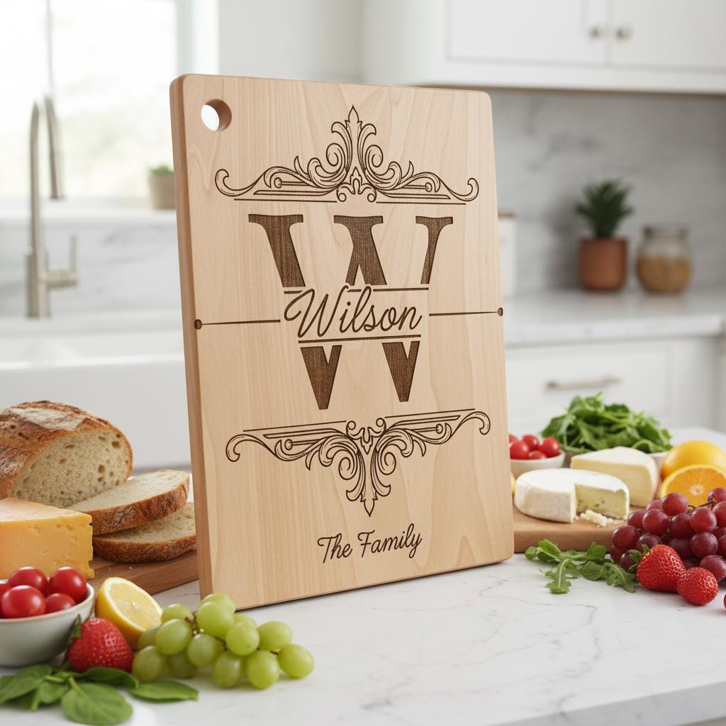 Sublimez votre cuisine et vos projets de cadeaux avec cette collection exclusive de 52 motifs de gravure de noms de famille vintage. Parfaitement conçus pour les planches à charcuterie et à découper, ces motifs intemporels ajoutent une touche personnalisée et sophistiquée qui impressionne à chaque fois.