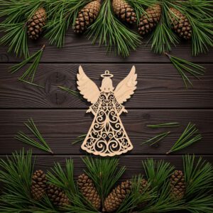 Ornement d'ange de Noël, fichier laser, ange dans une couronne, téléchargement numérique pour CNC.