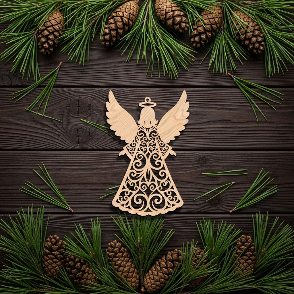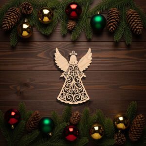 Ornement de Noël Ange Noir, Design d’Ange Intricate pour CNC, Décoration de Noël.