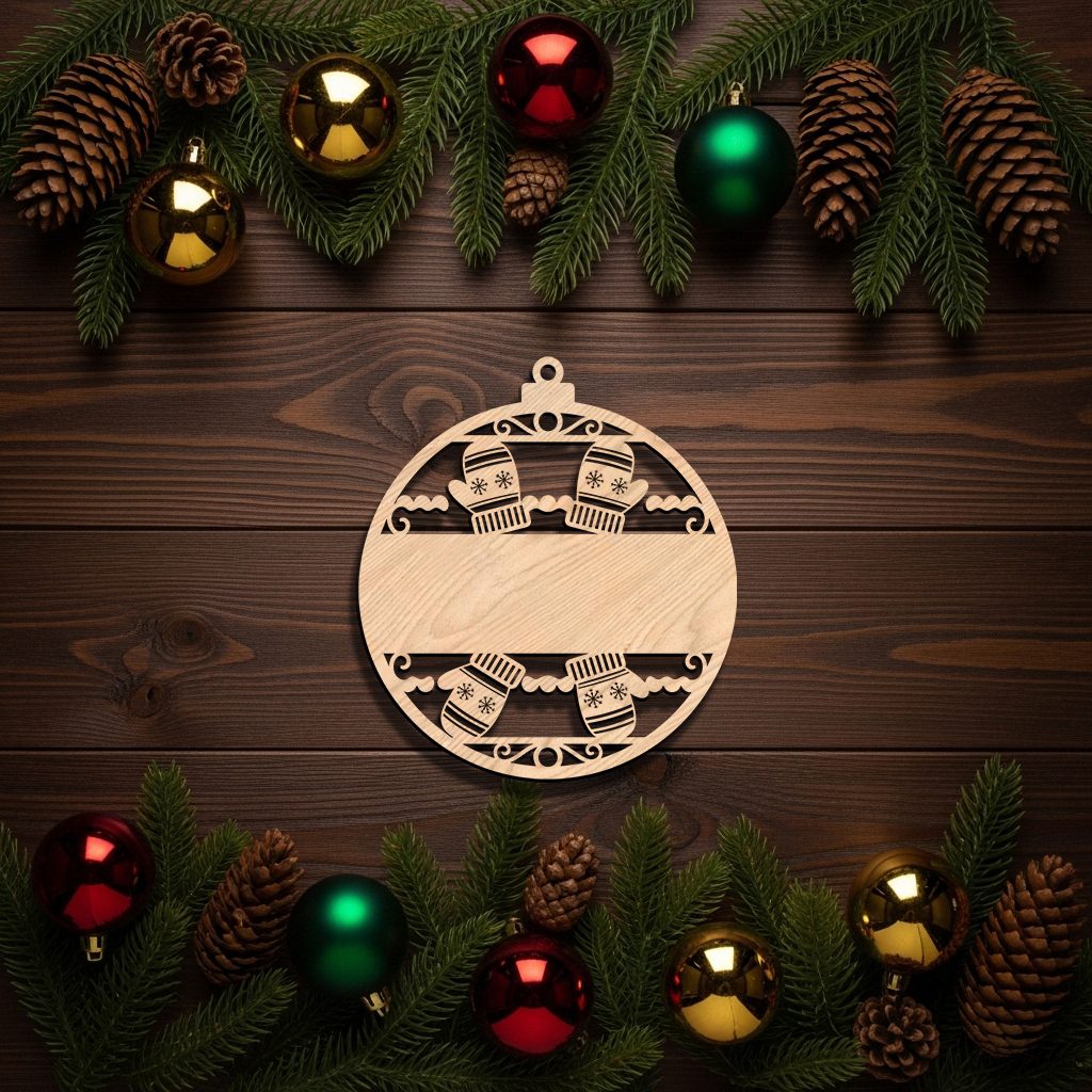 Ornement découpé au laser, Moufle personnalisée, Fichier de Noël en bannière pour créateurs.