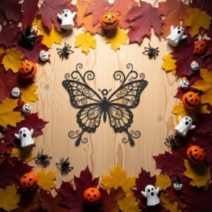 Transformez votre décor d’Halloween avec notre motif ornemental papillon complexe, conçu pour apporter une touche d’élégance à vos célébrations effrayantes. Cette œuvre d’art unique allie harmonieusement le charme envoûtant à des détails raffinés, parfait pour ceux qui souhaitent se démarquer.