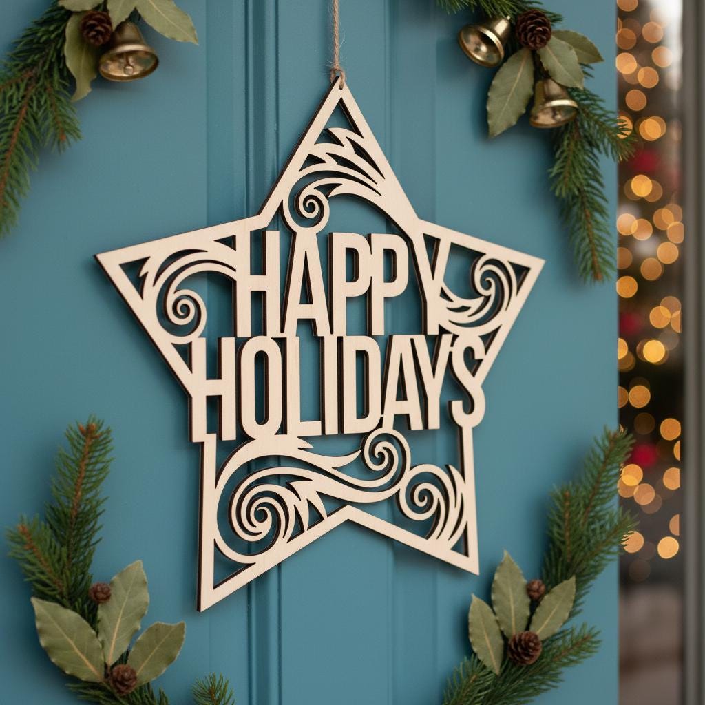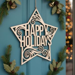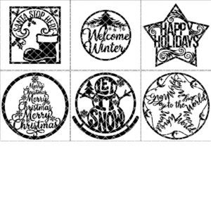 Eleva il tuo arredamento natalizio con il nostro pacchetto festivo di decorazioni rotonde da appendere alla porta per Natale. Progettati per macchine per incisione laser, questi motivi eleganti portano un fascino allegro al tuo ingresso.