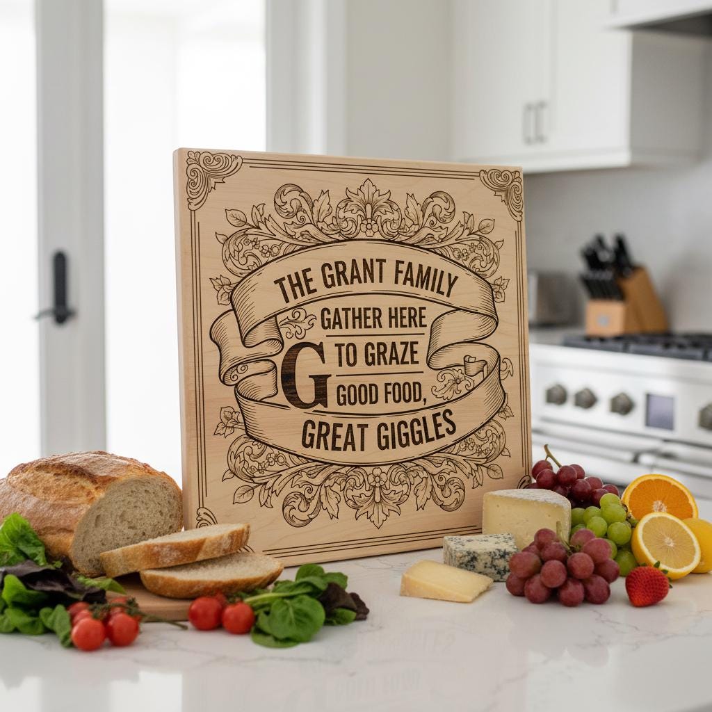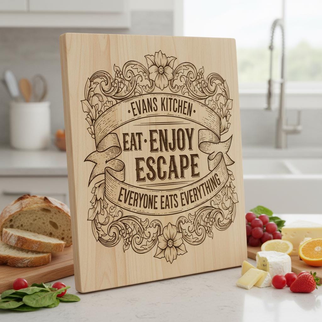 Trasforma la tua cucina in un caldo luogo di ritrovo con il nostro Pacchetto File Incisione Nome di Famiglia. Personalizza taglieri con il nome della tua famiglia e motivi vintage per salumi, rendendo ogni pasto ancora più speciale. Questi design aggiungono un tocco unico e sentito, perfetto per cene e celebrazioni in famiglia.