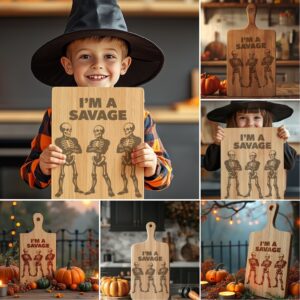 Preparati a stupire i tuoi ospiti in questa spaventosa stagione con il nostro pacchetto di incisioni per taglieri di Halloween! Con sei design esilaranti, questa collezione aggiunge un tocco unico e festoso a qualsiasi riunione o festa.