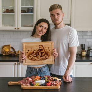 Stupisci i tuoi ospiti e i tuoi cari con un tagliere unico, fatto a mano e pensato per gli amanti degli orsi e gli appassionati di natura. Trasforma le occasioni ordinarie in feste memorabili con questo design eccezionale: ordina ora e porta un tocco di fascino boschivo alla tua prossima celebrazione!
