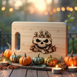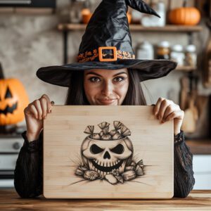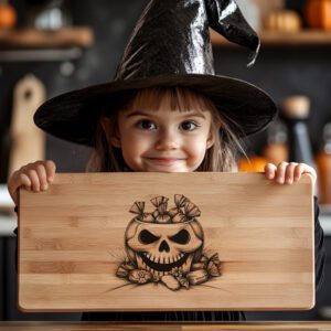 Eleva i tuoi incontri di Halloween con il nostro file di incisione laser per tagliere di salumi spettrale. Caratterizzato da un’esclusiva ciotola a forma di teschio per caramelle e un inquietante vassoio di portata, questo design aggiunge istantaneamente un tocco spettrale a qualsiasi buffet.