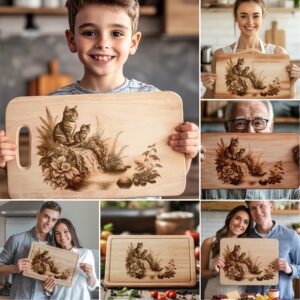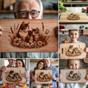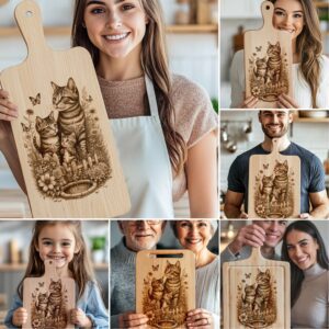 Eleva l’arredamento della tua cucina con i nostri file per incisione laser di taglieri per salumi, con un’adorabile collezione Famiglia di Gatti. Perfetti per aggiungere un tocco personale alla tua casa o per fare un regalo ai tuoi cari, questi design portano calore e carattere con ogni dettaglio inciso.