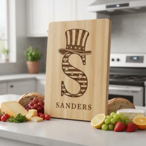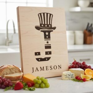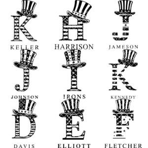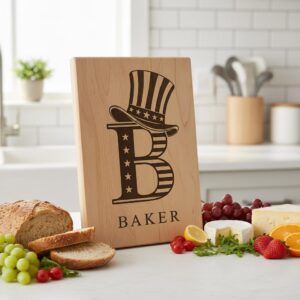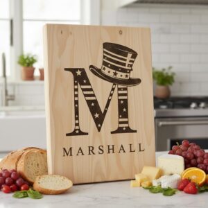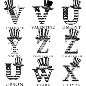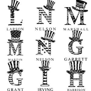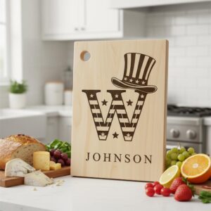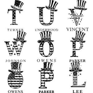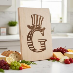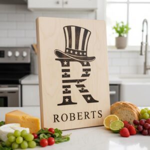 Presentazione del nostro esclusivo file di incisione laser con 54 design di monogrammi alfabetici, arricchiti da un tocco patriottico. Eleva le tue creazioni di taglieri con una personalizzazione unica del nome di famiglia che si distingue magnificamente.