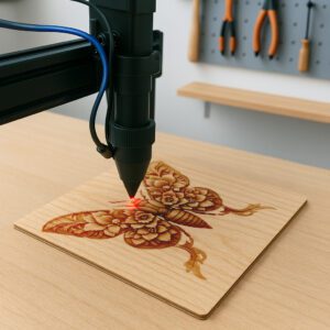 - Il legno preferito per l'incisione è il Legno di Balsa/Birch o legno chiaro con impostazione Potenza: 20-30%, Velocità: 300-400 mm/s, DPI: 300-600.