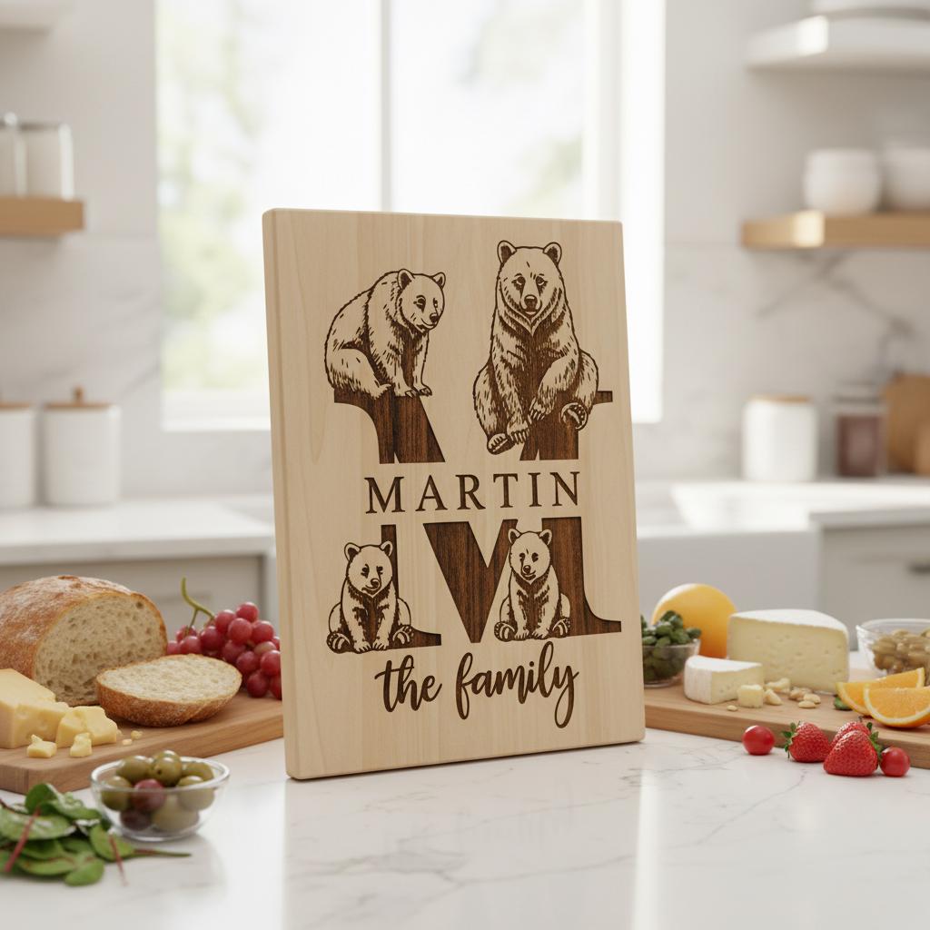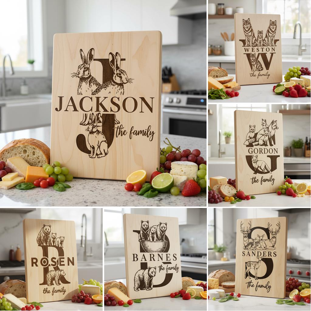 Eleva l’arredamento della tua casa con questi incantevoli disegni rustici con il nome della famiglia e animali. Perfetti per creare taglieri personalizzati, portano un tocco caldo e invitante a qualsiasi cucina o sala da pranzo. Ogni design è realizzato per mettere in risalto l’identità unica della tua famiglia con uno stile senza tempo.