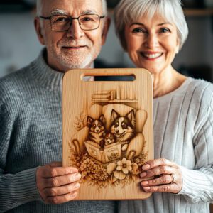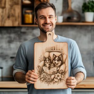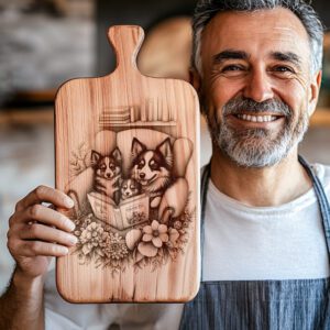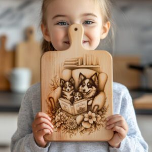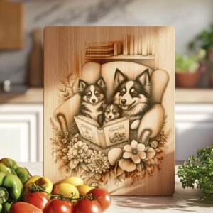 Eleva le tue riunioni in casa con il nostro file di incisione laser per taglieri di salumi, con un adorabile cane di famiglia che legge un libro. Questo delizioso design porta calore e personalità alla tua cucina, rendendo ogni occasione memorabile e invitante.