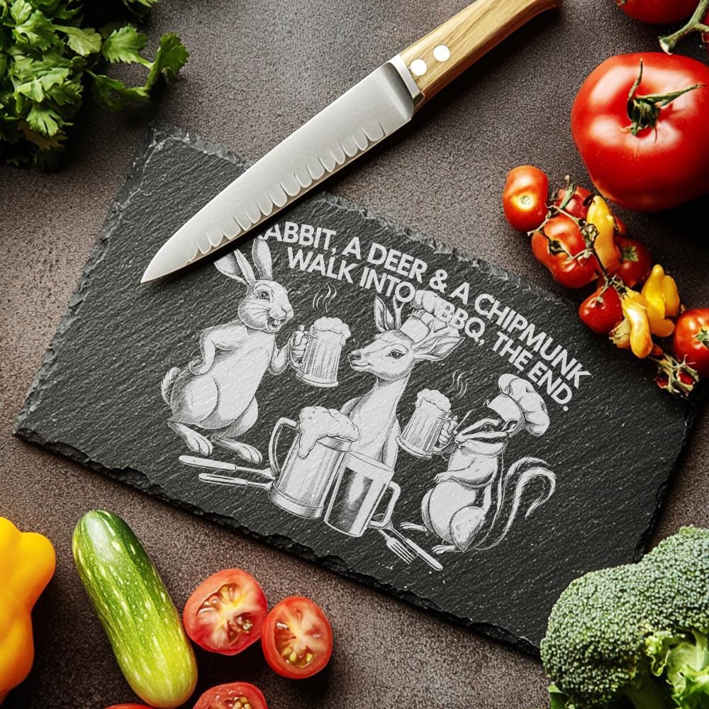 Scatena la tua creatività con il nostro straordinario file per incisione laser su tagliere in ardesia! Questo design versatile, con un adorabile coniglio, un cervo e uno scoiattolo in un tema BBQ, è perfetto per aggiungere un tocco di fascino rustico alla tua cucina. Ideale per taglieri di salumi, per tagliare o semplicemente come pezzo decorativo, questo file ad alta risoluzione è compatibile con tutte le principali macchine per incisione laser come Lightburn e Glowforge.