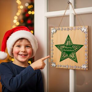 Accogli la stagione festiva con il nostro file laser cut per appendiporta natalizio, progettato per creare decorazioni natalizie accattivanti. Questo modello di cartello rotondo presenta un bellissimo messaggio “Buon Natale” con un affascinante accento a stella, perfetto per portare calore a qualsiasi ingresso.