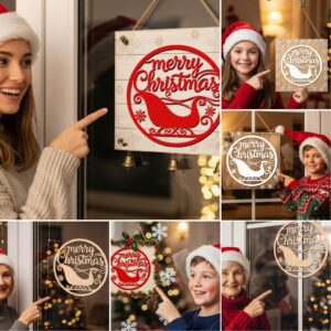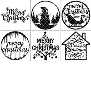 Pacchetto di decorazioni natalizie per porta, 6 cartelli rotondi a tema festivo, file laser per Glowforge