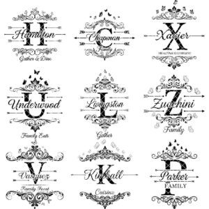 Unisci armoniosamente l’eleganza classica con la tecnologia moderna aggiungendo questi testi unici e decorativi ai tuoi progetti di incisione laser. Ogni design offre l’opportunità di trasformare oggetti ordinari in tesori straordinari, rendendoli perfetti per ogni riunione di famiglia o celebrazione personale. Eleva le tue presentazioni culinarie con un tocco di storia e arte, mettendo in mostra la bellezza dell’intricato e della tradizione.