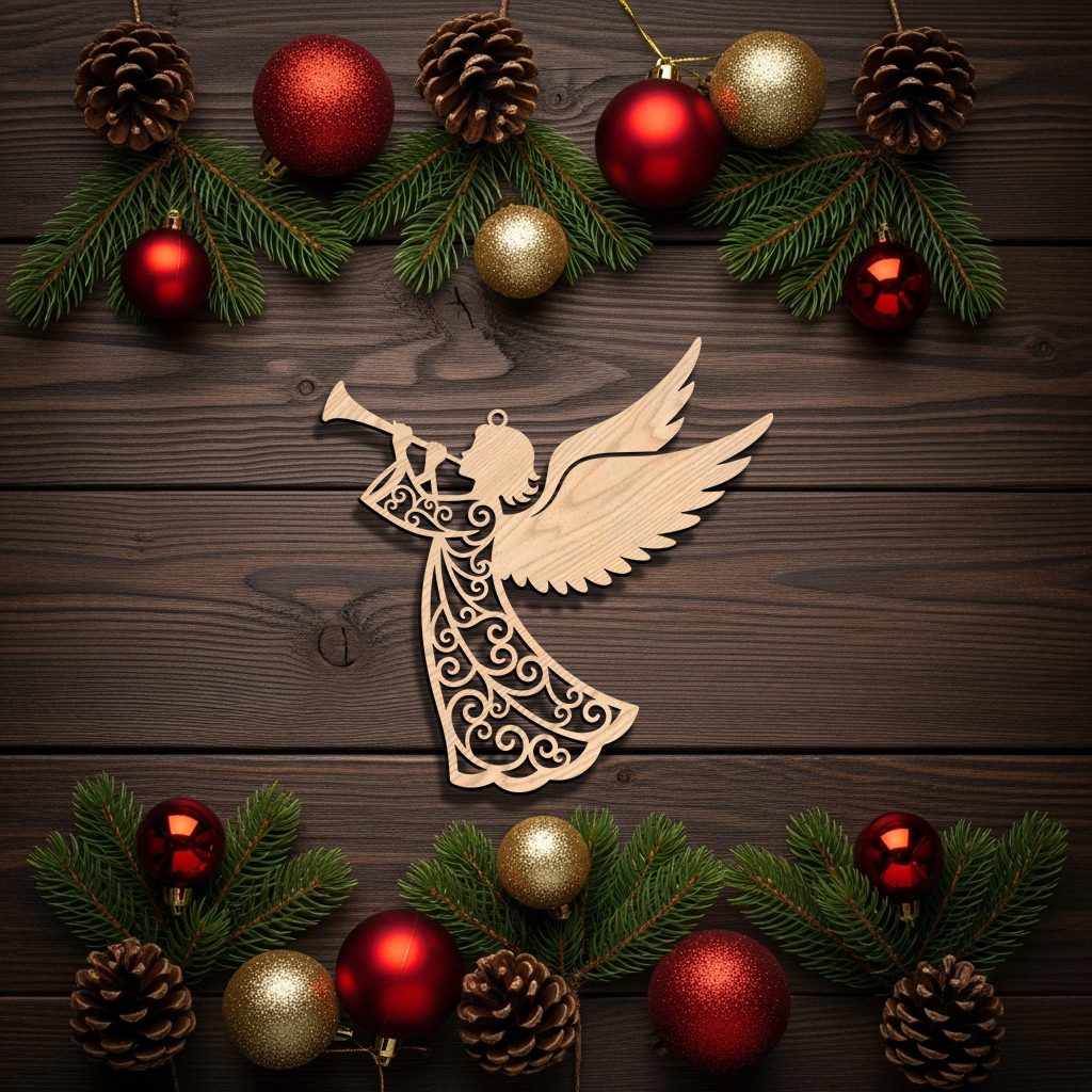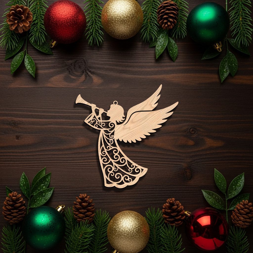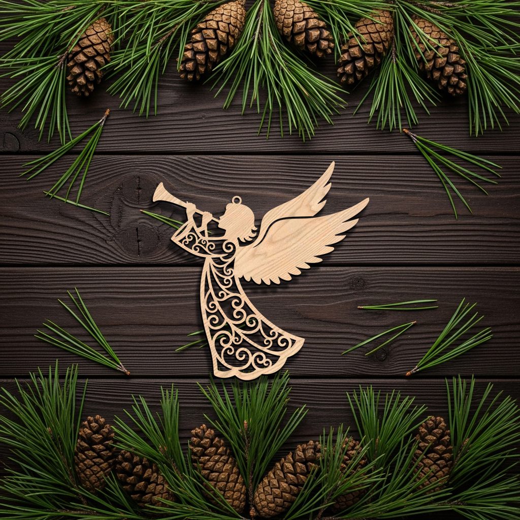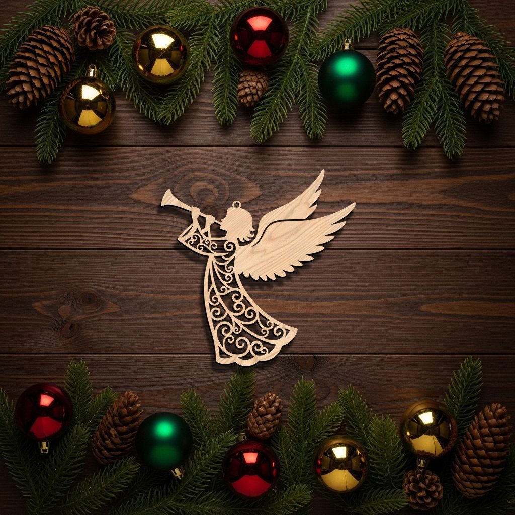 Angel Ornament Laser File, Christmas Trumpet Angel, Digital Download for CNC Crafts