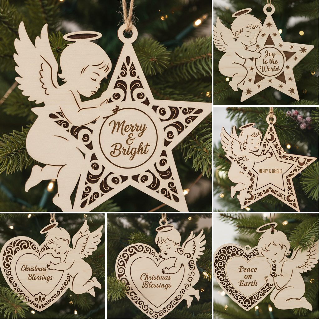Christmas Angel Ornament Bundle, Laser-Crafted Holiday Home Decor