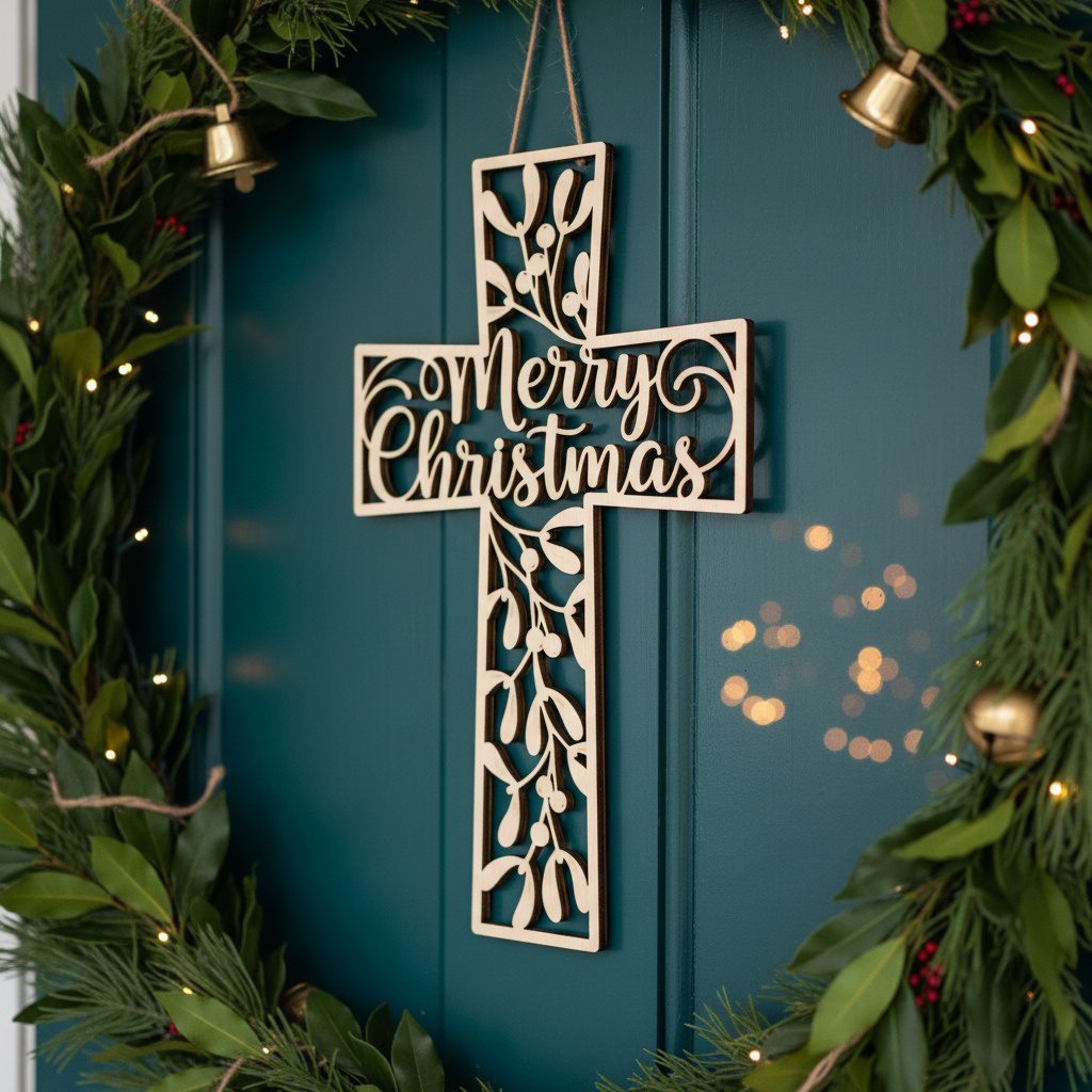 Welcome the spirit of Christmas into your home with our beautiful Cross Door Hanger design, perfect for the holiday season. Featuring elegant mistletoe details, this sign adds a touch of faith and festivity to any entryway, making guests feel instantly cherished.