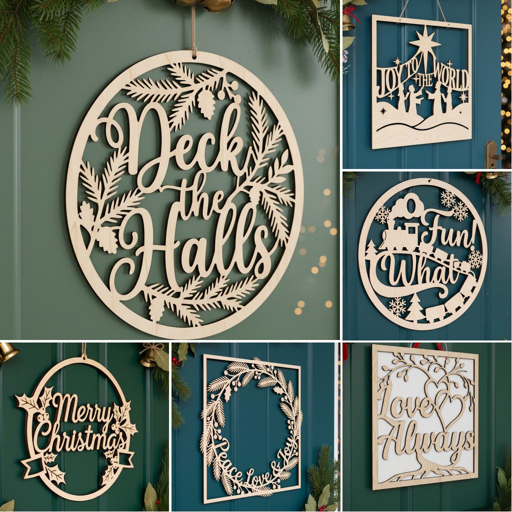 Choose from six unique monogram styles, each crafted for flawless integration with Lightburn and Glowforge. Simply load the project, select your initials, and instantly add holiday personality to any door or porch sign.