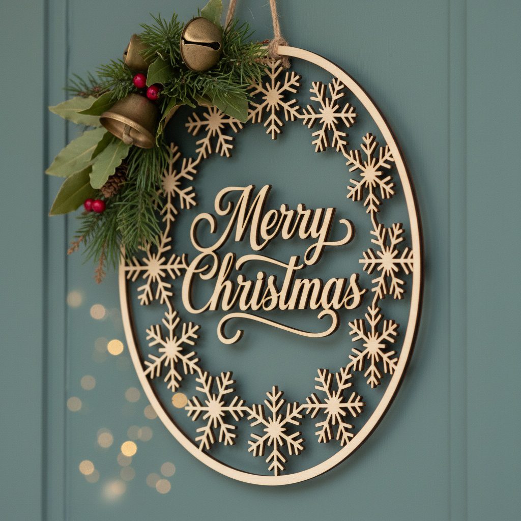 Elevate your holiday space with a stunning snowflake‑encircled Merry Christmas sign. Crafted for precision laser engravers, this design radiates seasonal charm and effortless style, instantly transforming any door or mantle into a festive focal point.