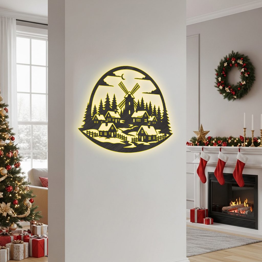 Transform your holiday décor with our exquisite monogram wall art, featuring a charming winter village. This ready‑to‑use design brings festive elegance to any space, turning ordinary walls into standout pieces that capture the season’s warmth and cheer.