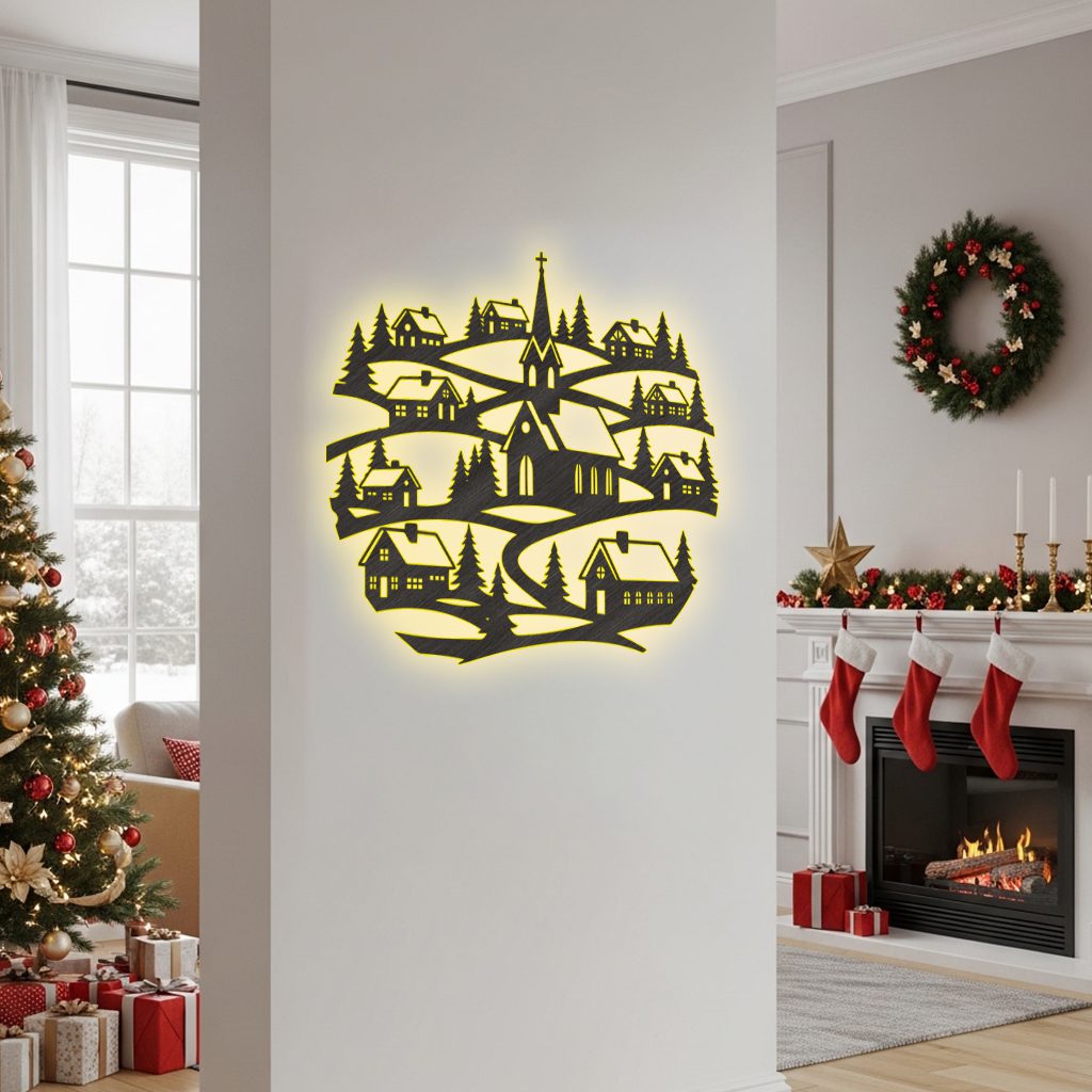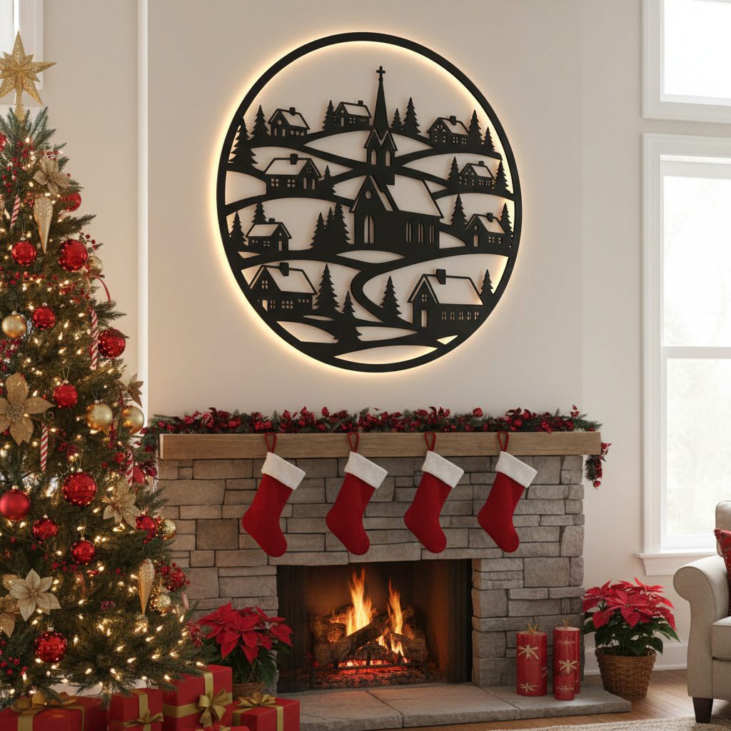Be the first to review “Christmas Laser Monogram Wall Art, Christian Village with Church Metal Sign” Cancel reply
