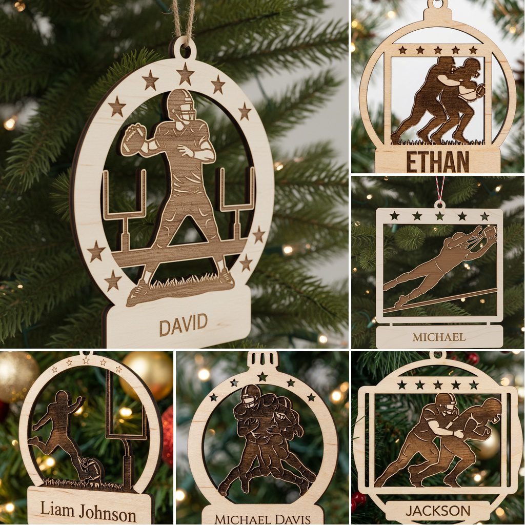Christmas Ornament Bundle, Personalized Football, Custom Name Xmas Decor