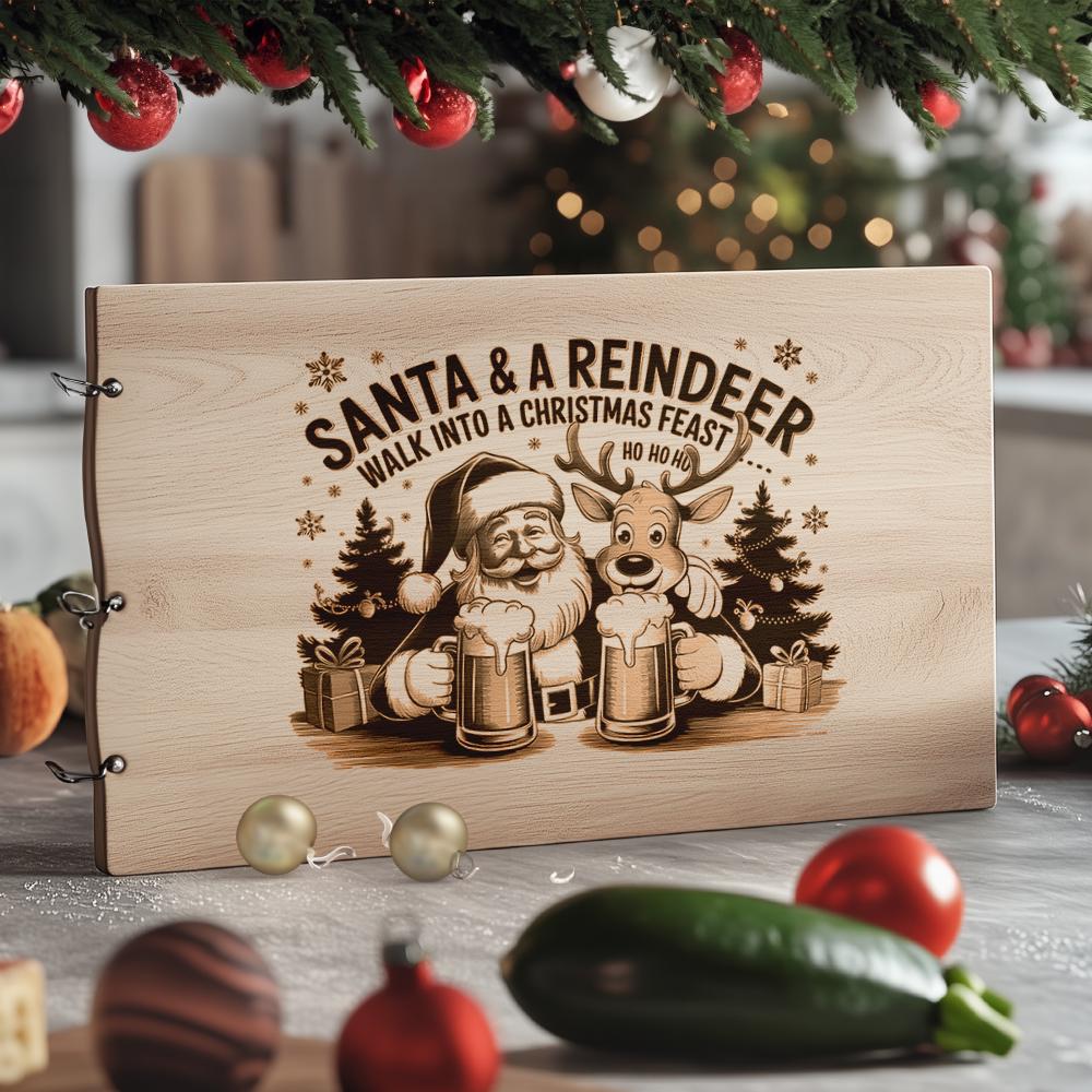 Spread holiday cheer with this festive laser engraving file! Featuring a hilarious Santa and reindeer, this design is perfect for adding a touch of fun to your kitchen decor. Use it to personalize cutting boards, chopping boards, or any other wood surface.