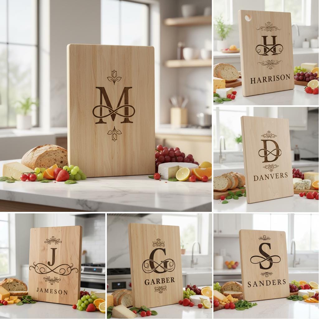 Elevate your charcuterie boards with our Floral Monogram Laser Engraving File, designed to add elegance and personal flair. Each alphabet features intricate floral accents, making every family name truly one-of-a-kind.