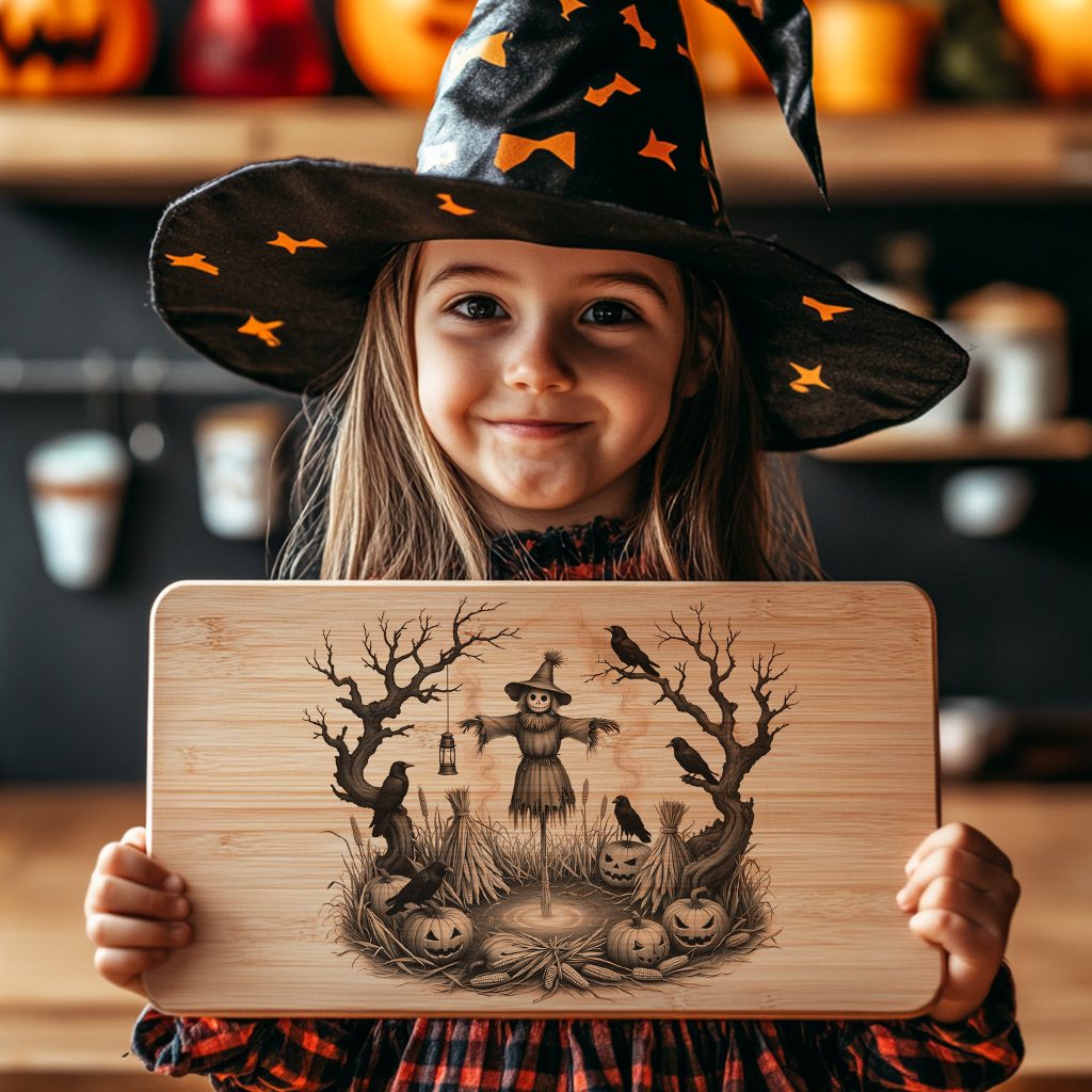 Transform your charcuterie boards with our Halloween Engraving Laser File, featuring the captivating Enchanted Scarecrow Harvest Ritual design. This unique artwork instantly adds festive charm and mystical allure to your serving pieces, creating unforgettable seasonal celebrations for friends and family.
