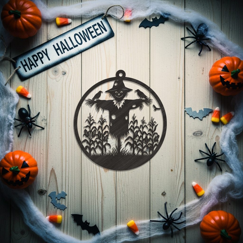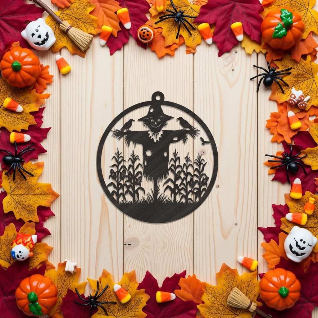 Elevate your Halloween décor with our intricately designed scarecrow ornament, complete with crows perched in a rustling cornfield. This high-resolution digital file is ready for laser machines, delivering stunning depth and detail for any spooky seasonal project.